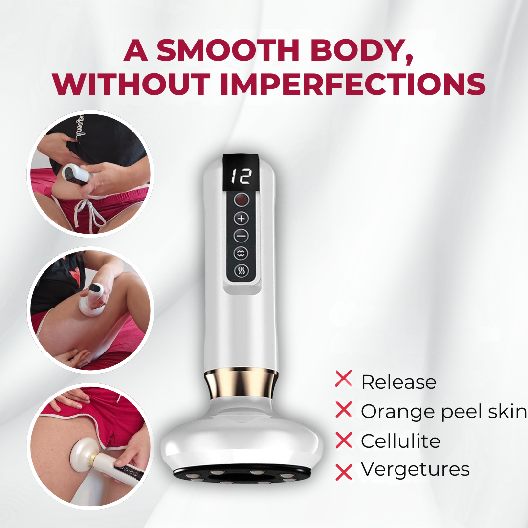 El dispositivo combina vibraciones de alta frecuencia y una succión suave, para un masaje efectivo que activa la microcirculación y favorece la eliminación de grasas subcutáneas.