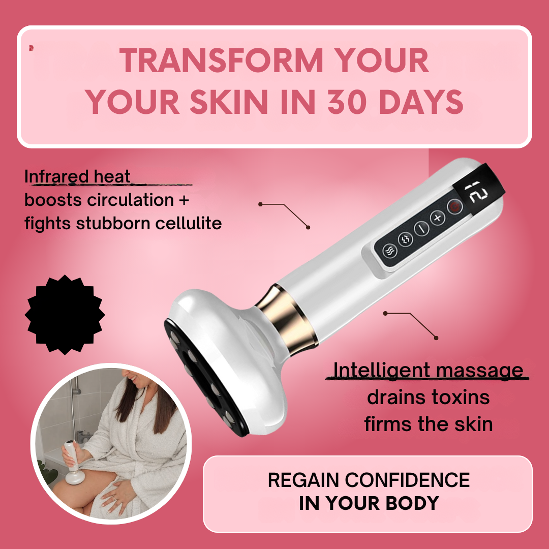 Gracias a su tecnología de masaje profundo, este dispositivo actúa en profundidad para estimular la circulación, alisar la piel y reducir los bultos relacionados con la celulitis y la flacidez cutánea.